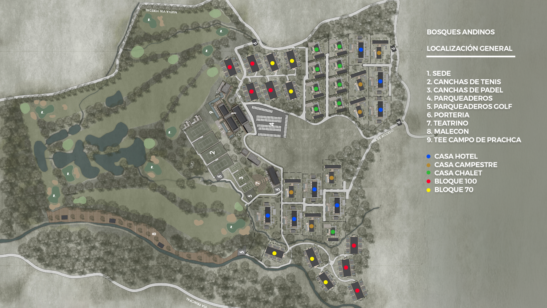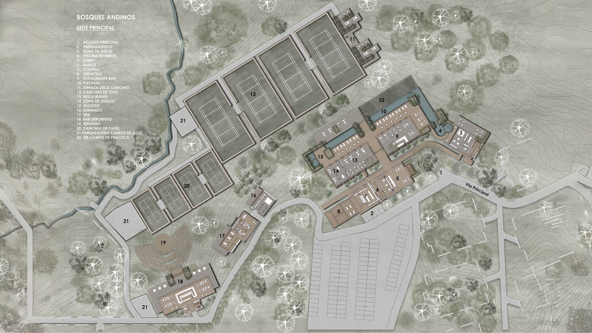 Bosques Andinos es un club social de montaña con un concepto unico en Colombia, que tiene dentro de sus instalaciones 2 academias deportivas de alto performance, una de Tennis y una de Golf, un Centro de Bienestar, Medicina Estetica y Longevidad, redefiniendo el estilo de vida de sus miembros y visitantes.